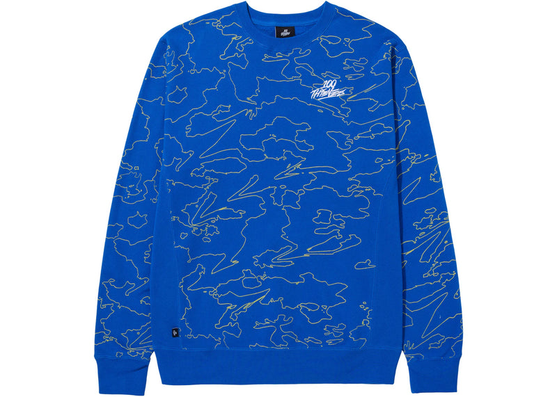 The 100 Thieves Foundations Geoprint Crewneck Royal/Yellow is now available at Side Kicks!