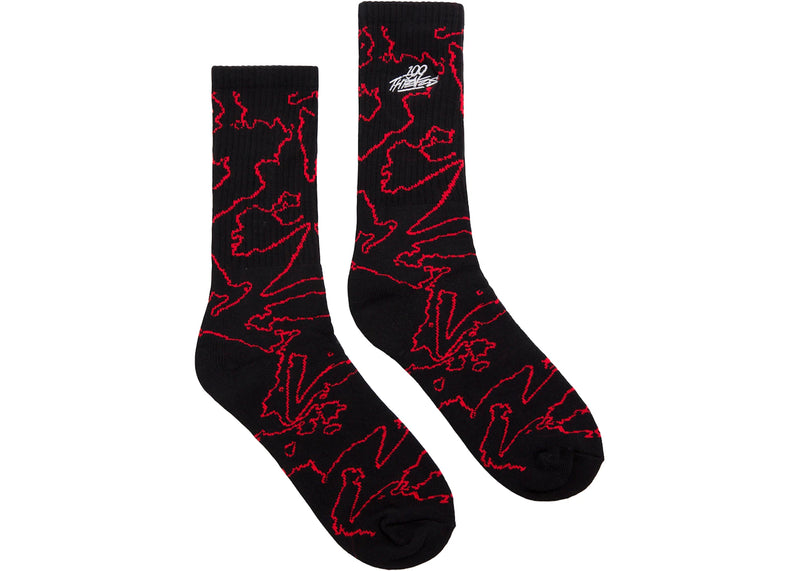 The 100 Thieves Foundations Geoprint Socks Black/Red is now available at Side Kicks!