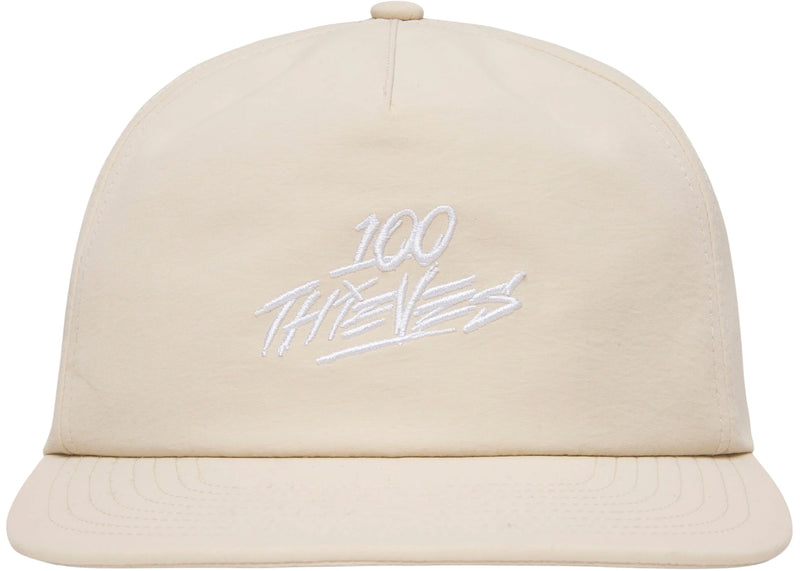 The 100 Thieves Foundations Unstructured Nylon Snapback Hat Bone is now available at Side Kicks!