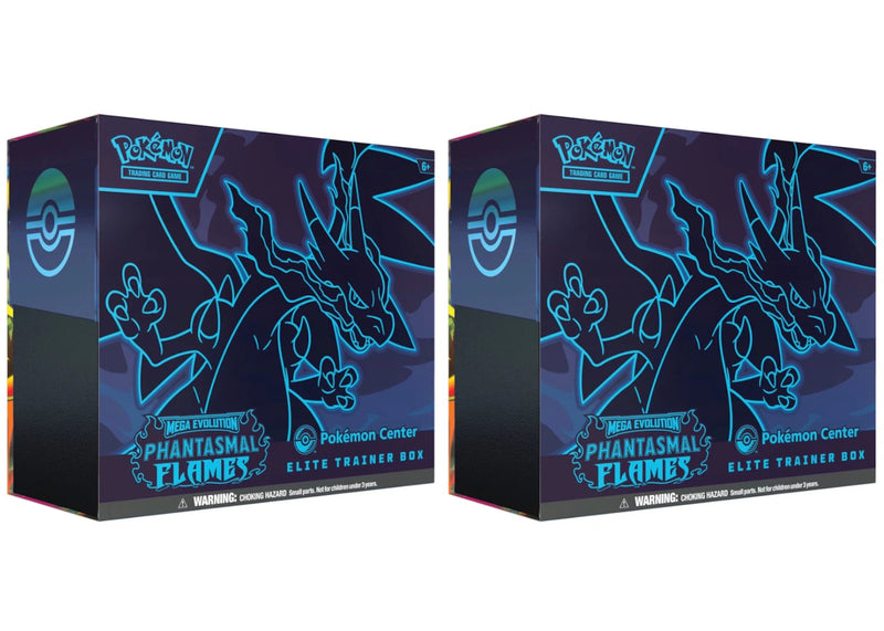 The 2025 Pokémon Mega Evolution Phantasmal Flames Pokemon Center Elite Trainer Box 2x Lot is now available at Side Kicks!
