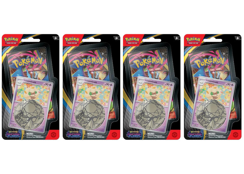 The 2025 Pokémon Mega Evolution Phantasmal Flames Whimsicott Blister Pack 4x Lot is now available at Side Kicks!