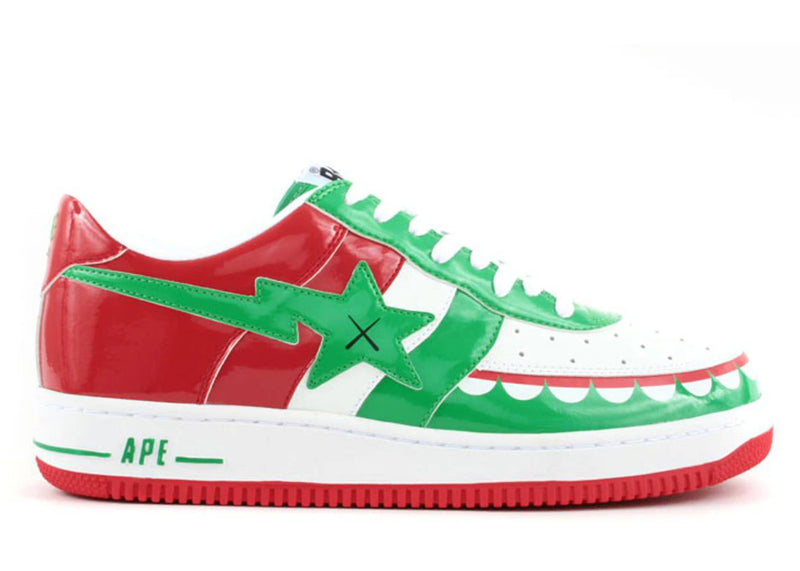 The A Bathing Ape Bape Sta Low KAWS Chompers Red Green is now available at Side Kicks!