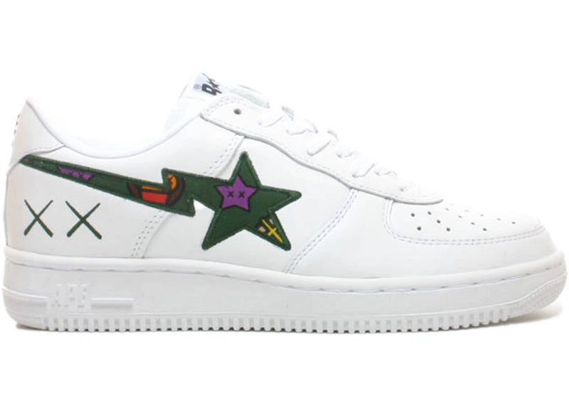 The A Bathing Ape Bape Sta Low KAWS White Green is now available at Side Kicks!