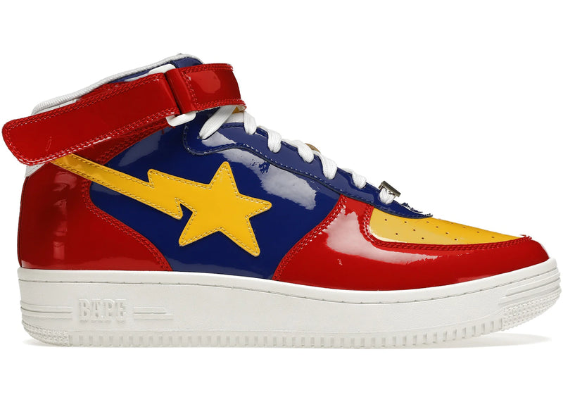 The A Bathing Ape Bape Sta Mid Red Yellow Blue (2020) is now available at Side Kicks!