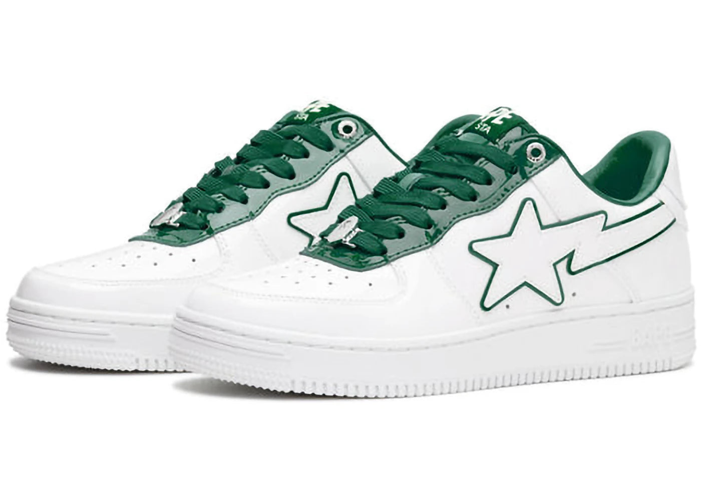 The A Bathing Ape Bape Sta Patent Leather White Green is now available at Side Kicks!