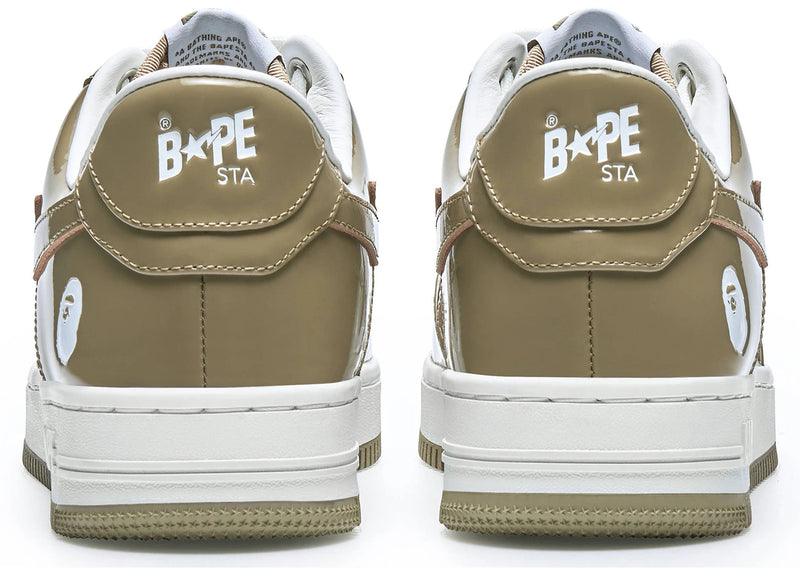 The A Bathing Ape Bape Sta Patent Leather White Khaki (2023) is now available at Side Kicks!