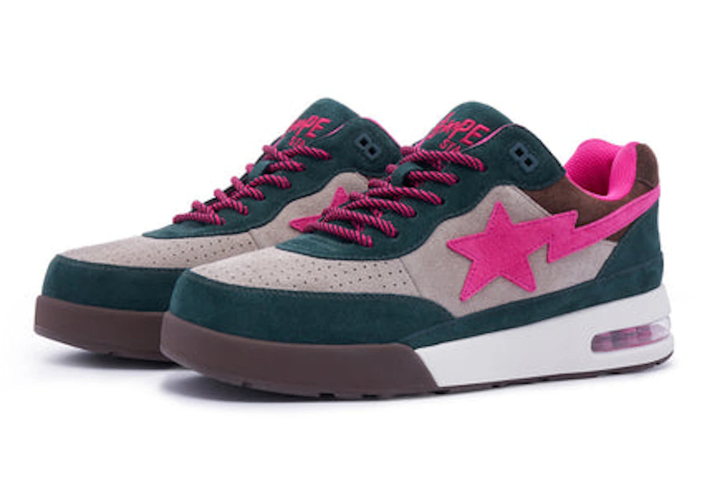A Bathing Ape Road Sta Premium Suede Dark Green Pink Beige