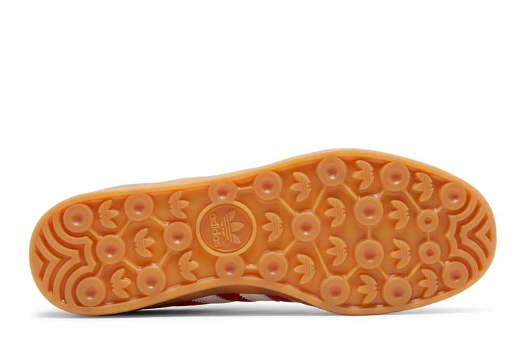 The adidas Gazelle Indoor Scarlet Cloud White features a vibrant red suede upper with contrasting white 3-Stripes logo. The design includes a gum outsole and a classic Gazelle silhouette. Made...