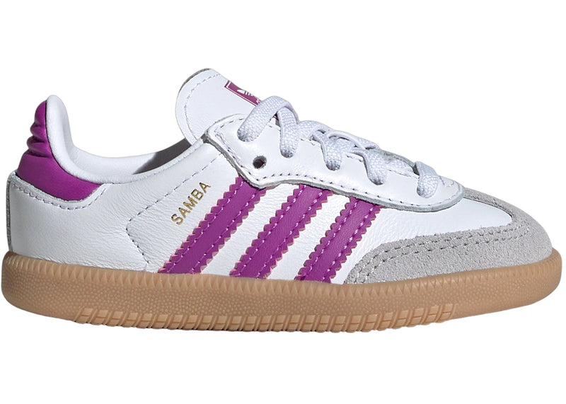 The adidas Samba OG Cloud White Purple Burst Gum (TD) is now available at Side Kicks!