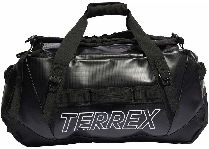 The adidas Terrex RAIN.RDY Expedition 70L Medium Duffel Bag Black/White is now available at Side Kicks!