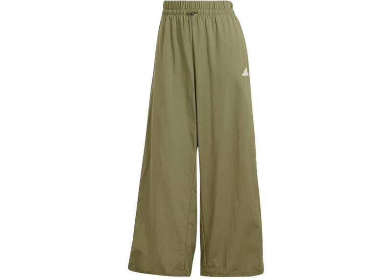 The adidas Women's Essentials 3-Stripes Lifestyle Woven Parachute Tracksuit Bottoms Olive Strata/White is now available at Side Kicks!