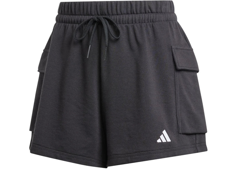 The adidas Women's Essentials Small Logo French Terry Cargo Shorts Black/White is now available at Side Kicks!