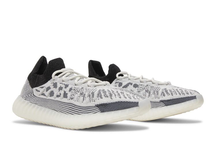 The adidas Yeezy 350 V2 CMPCT Slate Panda features a compact knitted upper with a monofilament side stripe in a Slate White colorway. It includes Yeezy Boost technology for cushioning and a translucent outsole for durability. The lace-up design and minimalist aesthetic ensure a sleek, modern look.