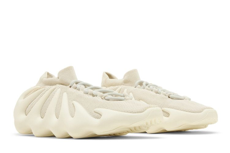 The Yeezy 450 ‘Cloud White’ features a deconstructed design with input from Steve Smith, known for iconic sneaker silhouettes. The shoe boasts a one-piece knit textile upper with an elastic cuff and integrated lacing system. The standout feature is the molded outsole with unique ‘fingers’ wrapping up the side panels. Released in March 2021, this design is a departure from traditional Yeezy styles, offering a minimalist yet striking look.
