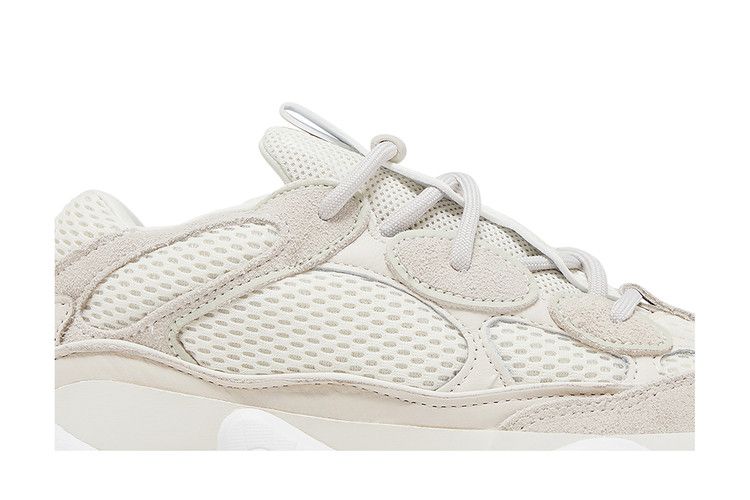 The adidas Yeezy 500 'Stone Taupe' features a tan open-cell mesh upper with suede and leather overlays, accented with reflective piping. It includes an Ortholite sockliner with adidas and Yeezy...