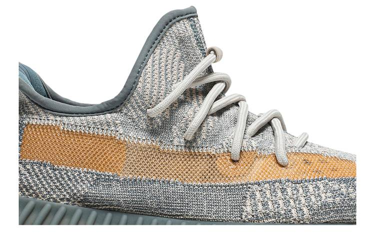The adidas Yeezy Boost 350 V2 ‘Israfil’ showcases a patchwork-like Primeknit upper in tan and grey yarns with a pop of yellow on the side stripe. Equipped with a Boost midsole and gum rubber outsole for comfort and traction.