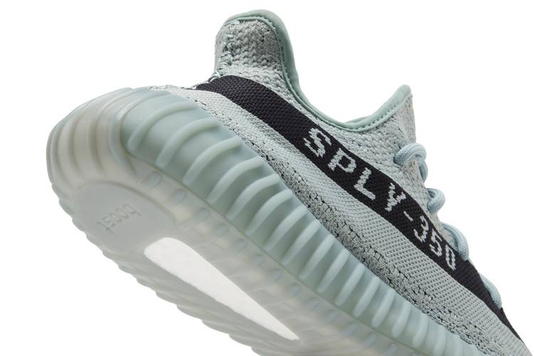 The adidas Yeezy Boost 350 V2 Salt is a stylish and comfortable sneaker featuring a mint green Primeknit upper with center-stitch detailing. The shoe includes a black streak on the lateral side with SPLY-350 branding. It is equipped with a full-length Boost midsole for responsive cushioning, enclosed in a TPU cage for added support. The rubber outsole provides excellent traction. This collaboration design between adidas and Yeezy offers a sleek and modern look suitable for everyday wear.