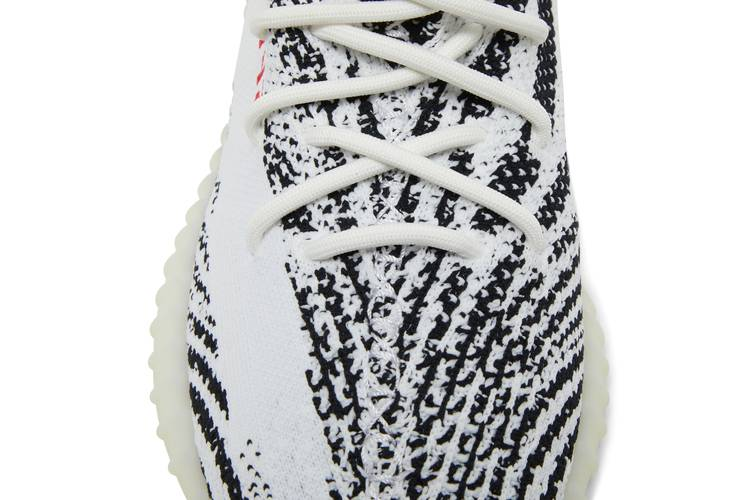 The adidas Yeezy Boost 350 V2 Zebra (2017/2022/2023) showcases a white/core black Primeknit upper with red SPLY 350 branding and a translucent white midsole housing full-length Boost cushioning. Originally released...