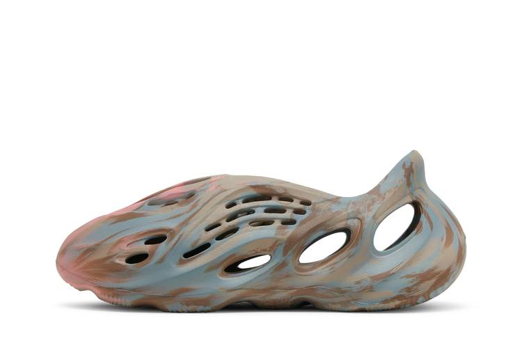 The adidas Yeezy Foam Runner ‘MX Sand Grey’ features a one-piece foam upper in a tan hue with swirling hits of grey and dark beige. The wavy traction pattern on the outsole provides enhanced grip, while ventilation ports offer breathability. The sculpted heel cradles the foot for added comfort. Inspired by camouflage styling, the color mix includes beige, dark brown, and grey swirls. Please note that the pattern may vary.