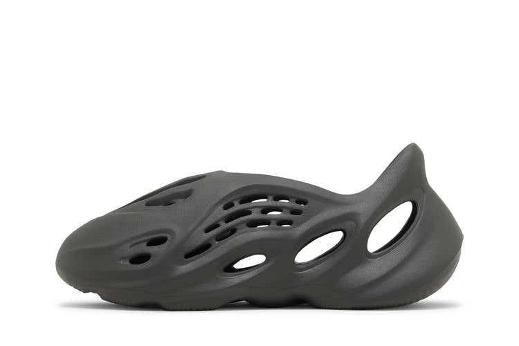 The adidas Yeezy Foam Runner ‘Carbon’ features a dark grey one-piece build made with injected EVA foam. Designed with flowing lines and a sculpted heel for optimal comfort, this slip-on shoe boasts strategically mapped vents for breathability and a textured footbed for a snug fit. The durable rubber outsole provides traction and stability for everyday wear. Released on August 8, 2023, this futuristic sneaker showcases adidas' commitment to innovative design and comfort.