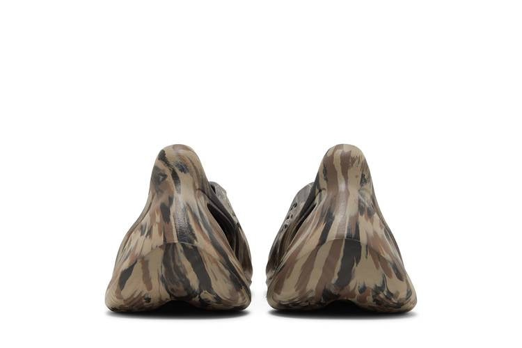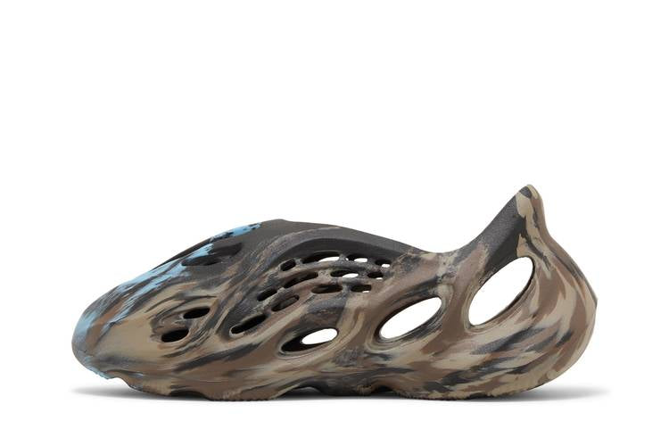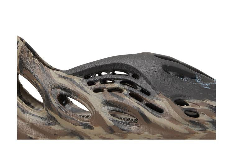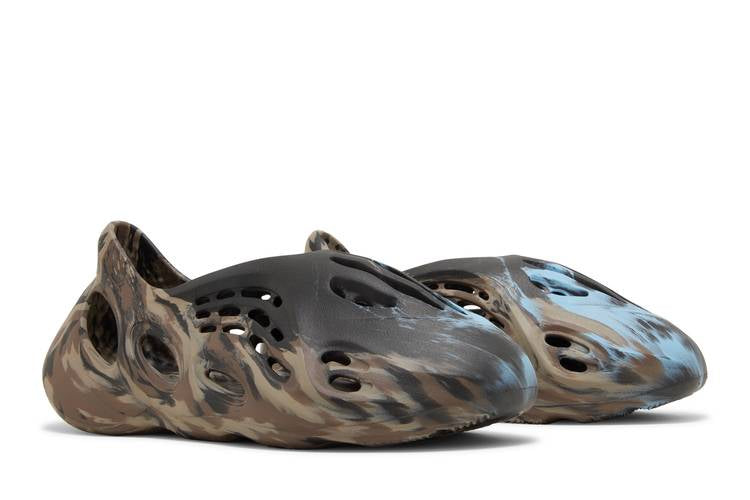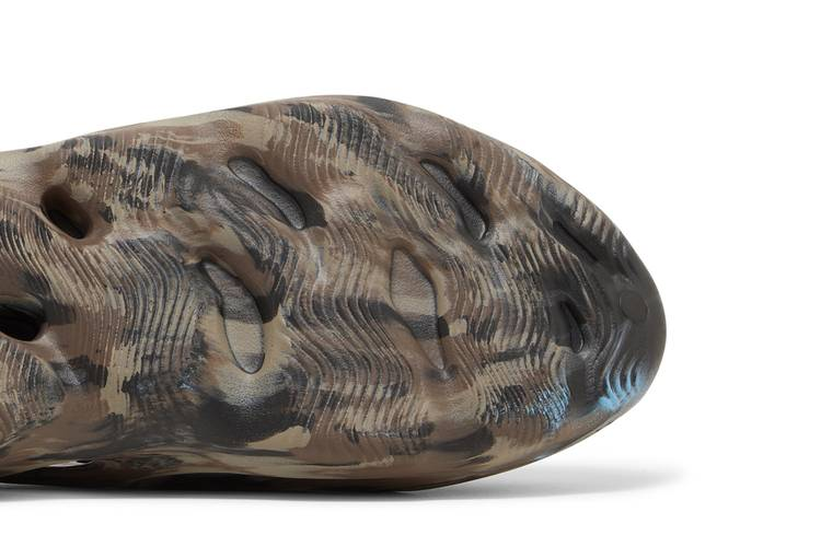 The adidas Yeezy Foam Runner ‘MX Cinder’ features a one-piece upper in a mix of brown and tan shades with pops of aqua blue. Constructed with injected EVA foam, this slip-on sneaker offers breathability through strategically placed vents and step-in comfort with a soft footbed. The contoured outsole provides optimal grip with a wavy tread pattern. The design inspiration for this shoe combines high fashion with innovative comfort, making it a versatile choice for streetwear and avant-garde styles.
