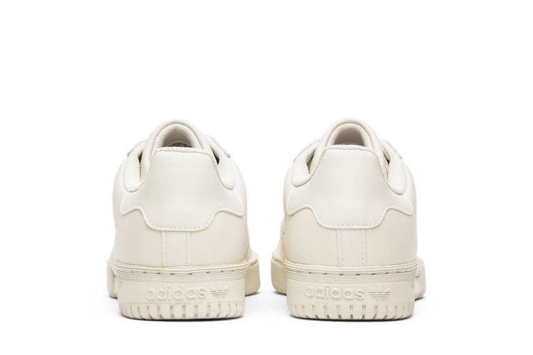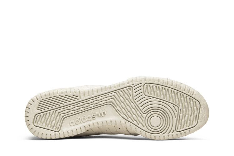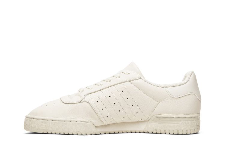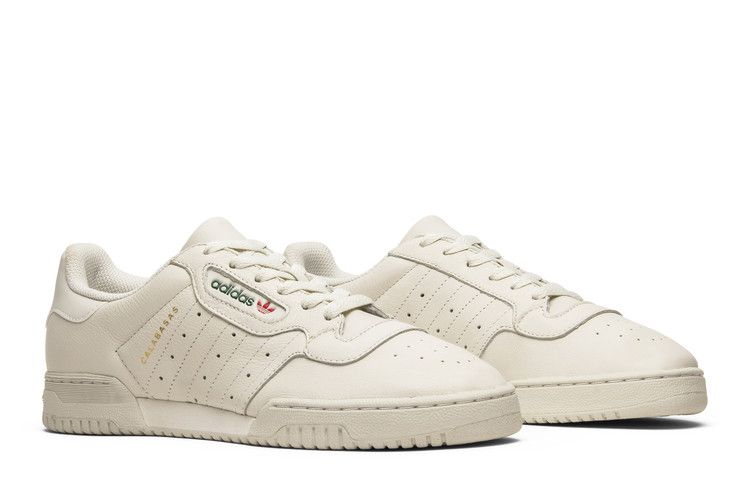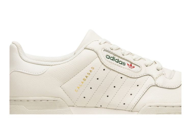 The adidas Yeezy Powerphase Calabasas Core White features an off-white leather upper with perforated 3-Stripes and gold foil Calabasas branding on the lateral side. It includes an adidas wordmark on...