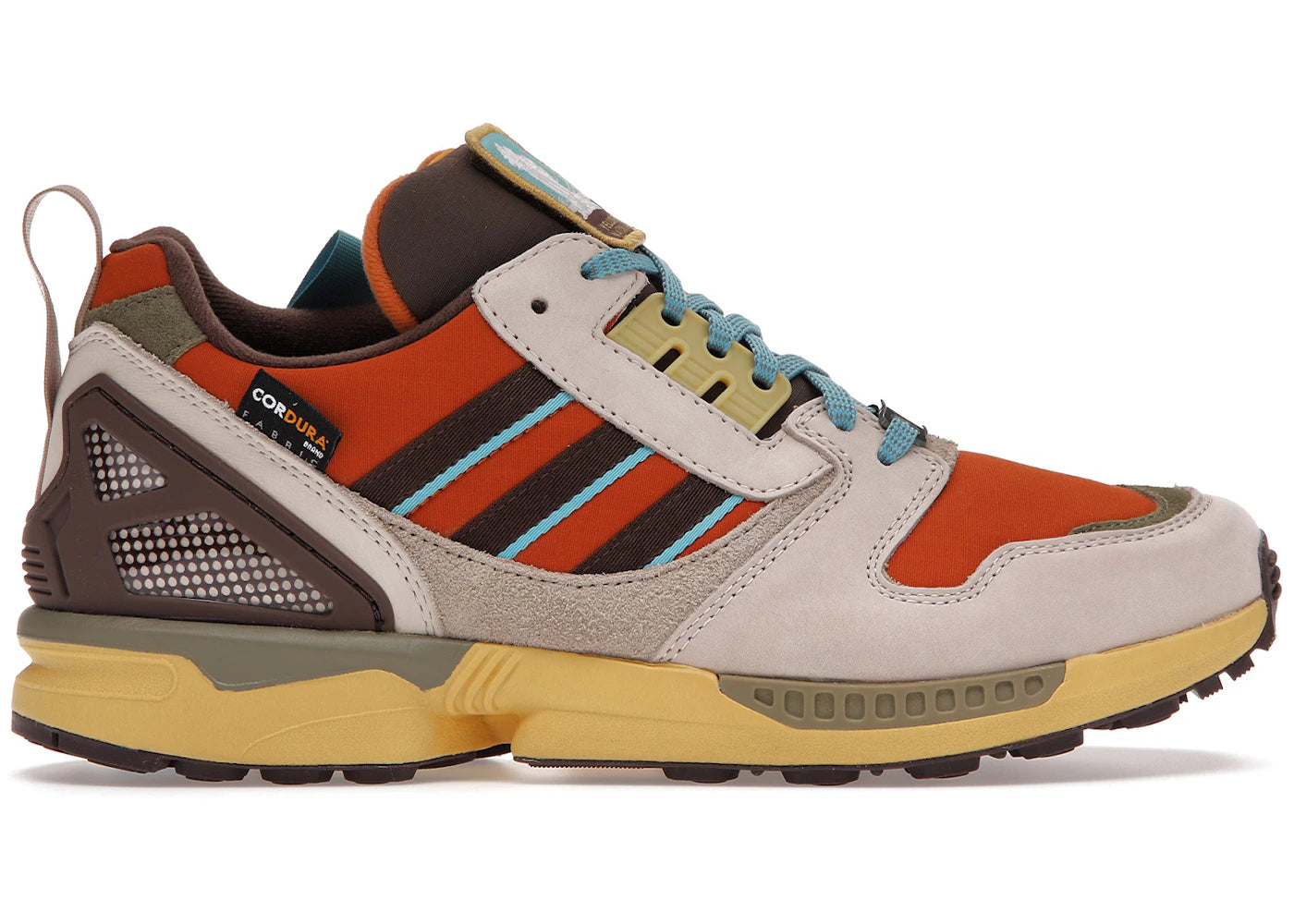 The adidas ZX 8000 National Park Foundation Yellowstone features a Cordura upper in burnt orange with tan leather overlays and suede side panels. A brown TPU heel counter and yellow...