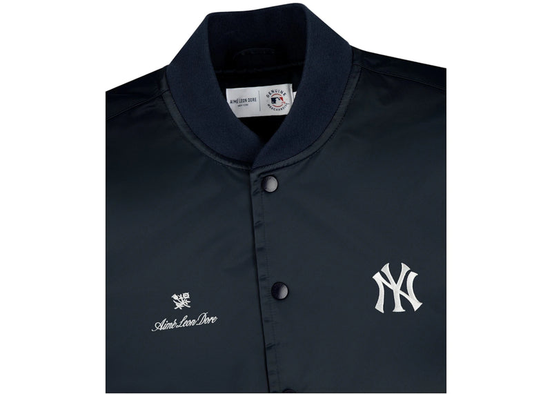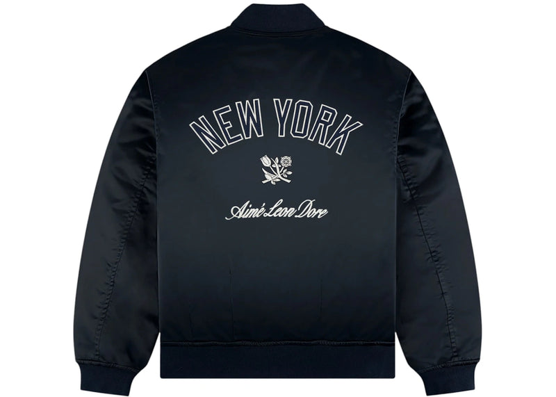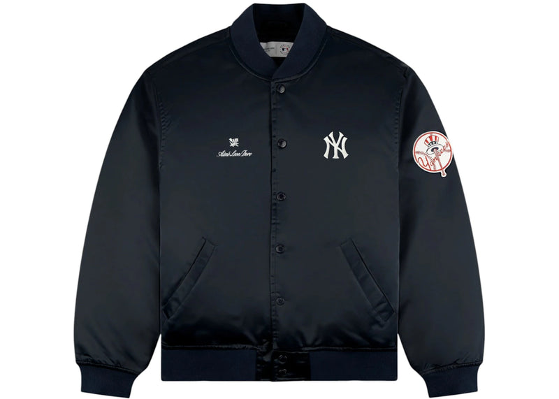 The Aime Leon Dore x New York Yankees Satin Varsity Jacket Navy is now available at Side Kicks!