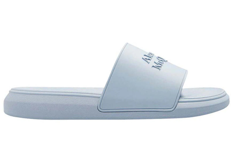 The Alexander McQueen Pool Slides Light Blue is now available at Side Kicks!