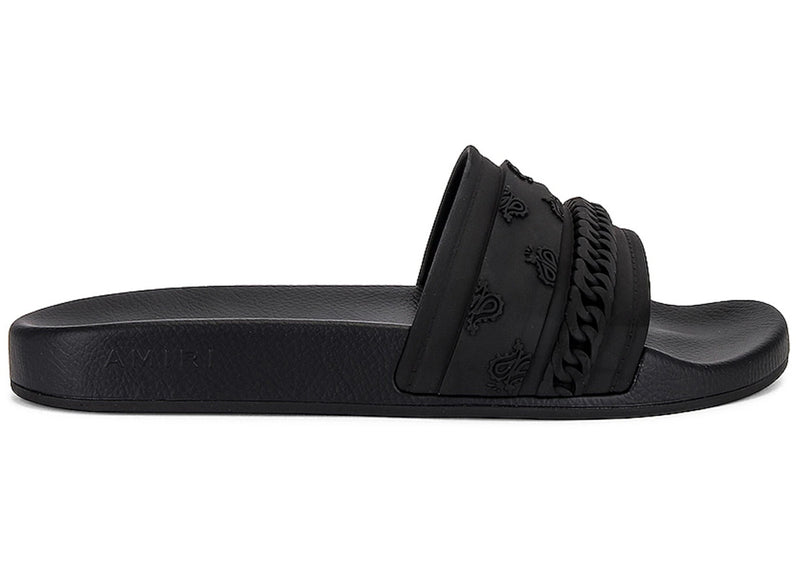 The AMIRI Bandana Moulded Slides Black Black is now available at Side Kicks!