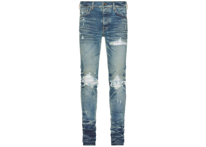 The AMIRI Bleached MA Paisley MX1 Jeans Honeycomb/Indigo is now available at Side Kicks!