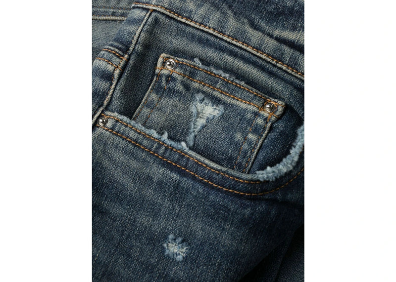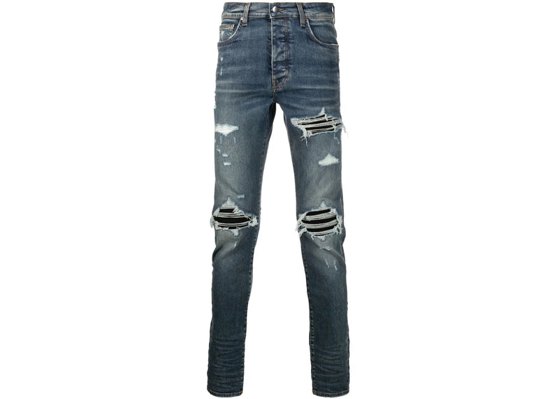 AMIRI Stonewashed Distressed Slim Cut Jeans Deep Classic Blue