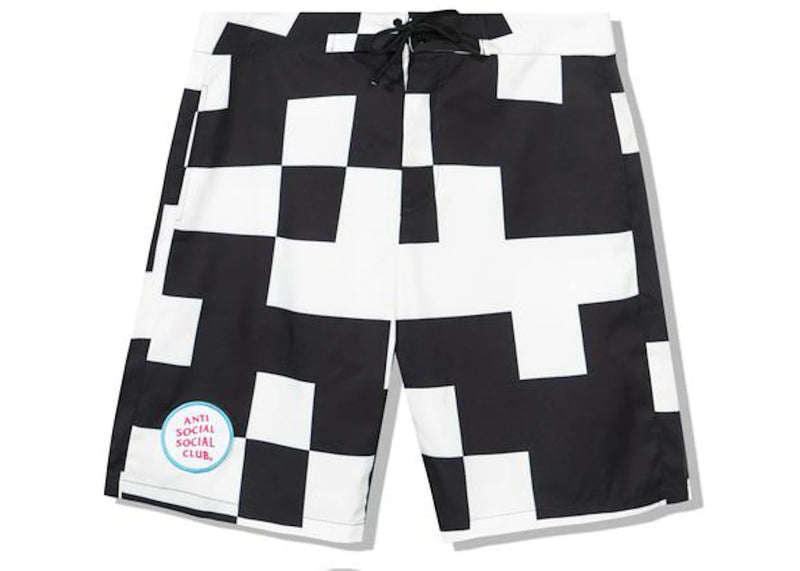 The Anti Social Social Club Kook Board Shorts Black/White is now available at Side Kicks!