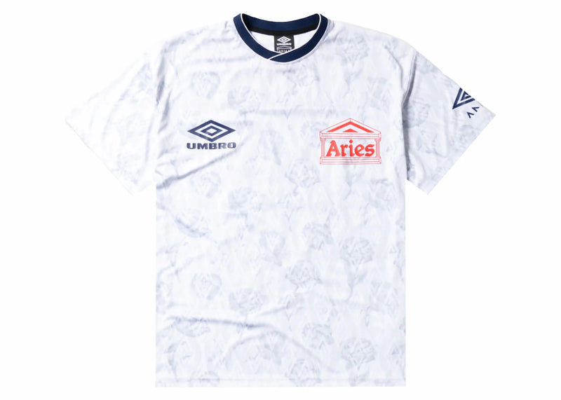 The Aries x Umbro White Roses S/S Football Jersey White is now available at Side Kicks!