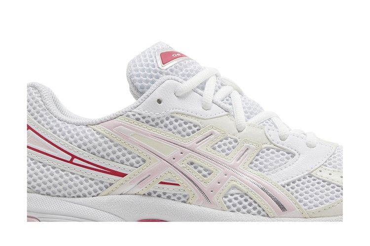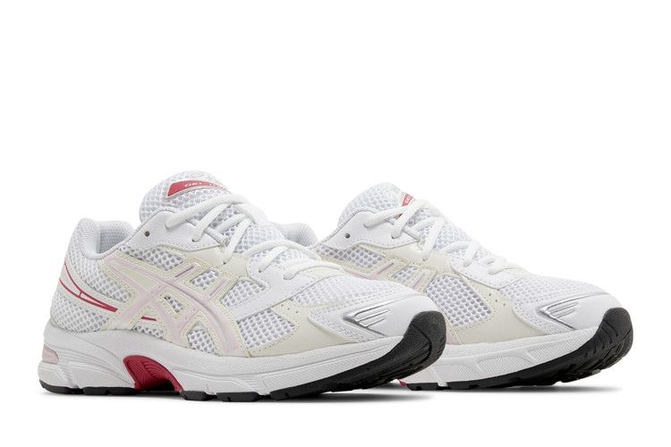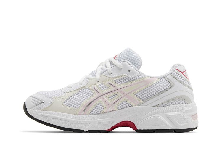 The ASICS Gel-1130 Pink Salt (GS) features a breathable white mesh upper with white and off-white leather overlays. Metallic silver accents form the toecap, eyestays, and heel supports, while light...