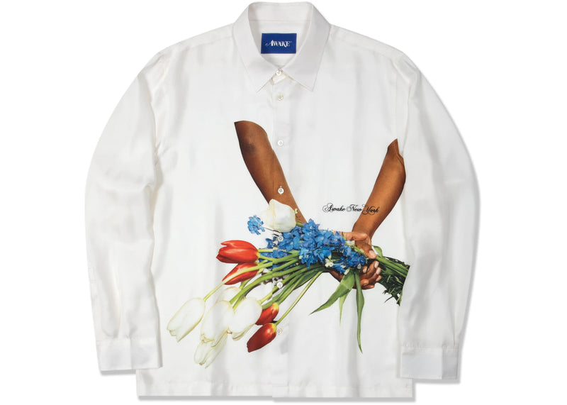 The Awake Bouquet Silk Shirt White is now available at Side Kicks!