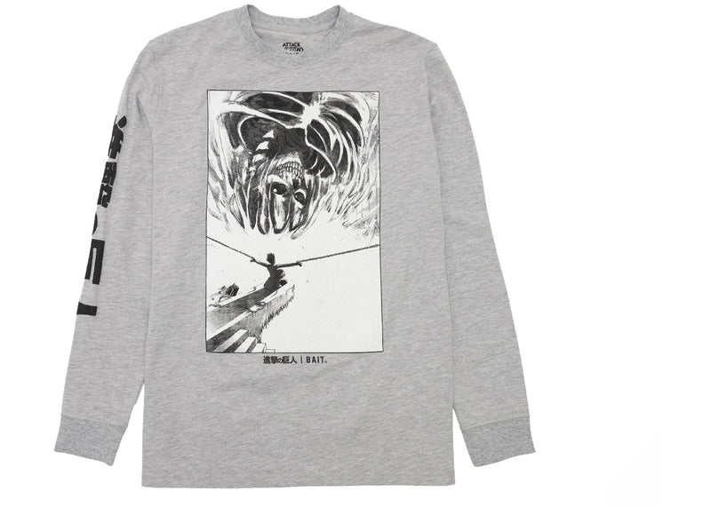 The BAIT x Attack On Titan King Reiss L/S Tee Gray is now available at Side Kicks!
