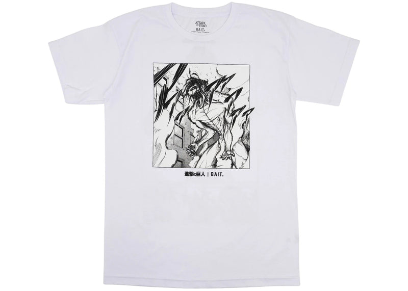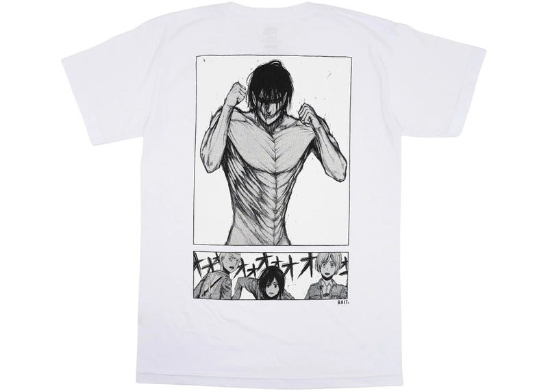 The BAIT x Attack On Titan The Roar Tee White is now available at Side Kicks!
