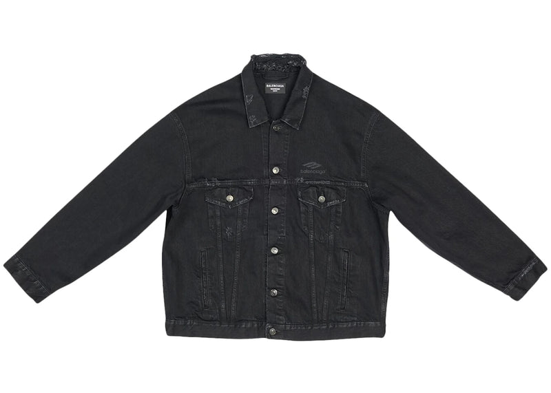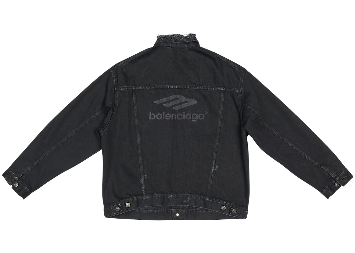 The Balenciaga 3B Sports Icon Large Fit Japanese Denim Jacket Black/Black Logo is now available at Side Kicks!