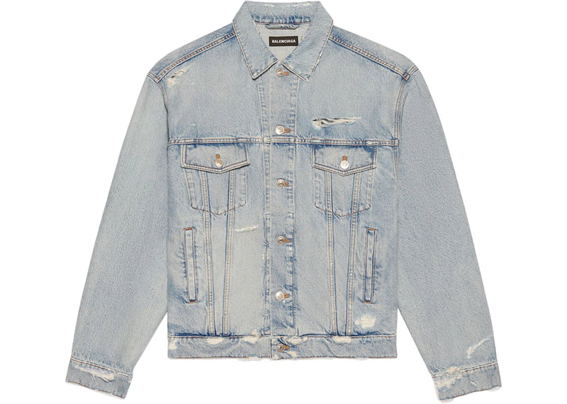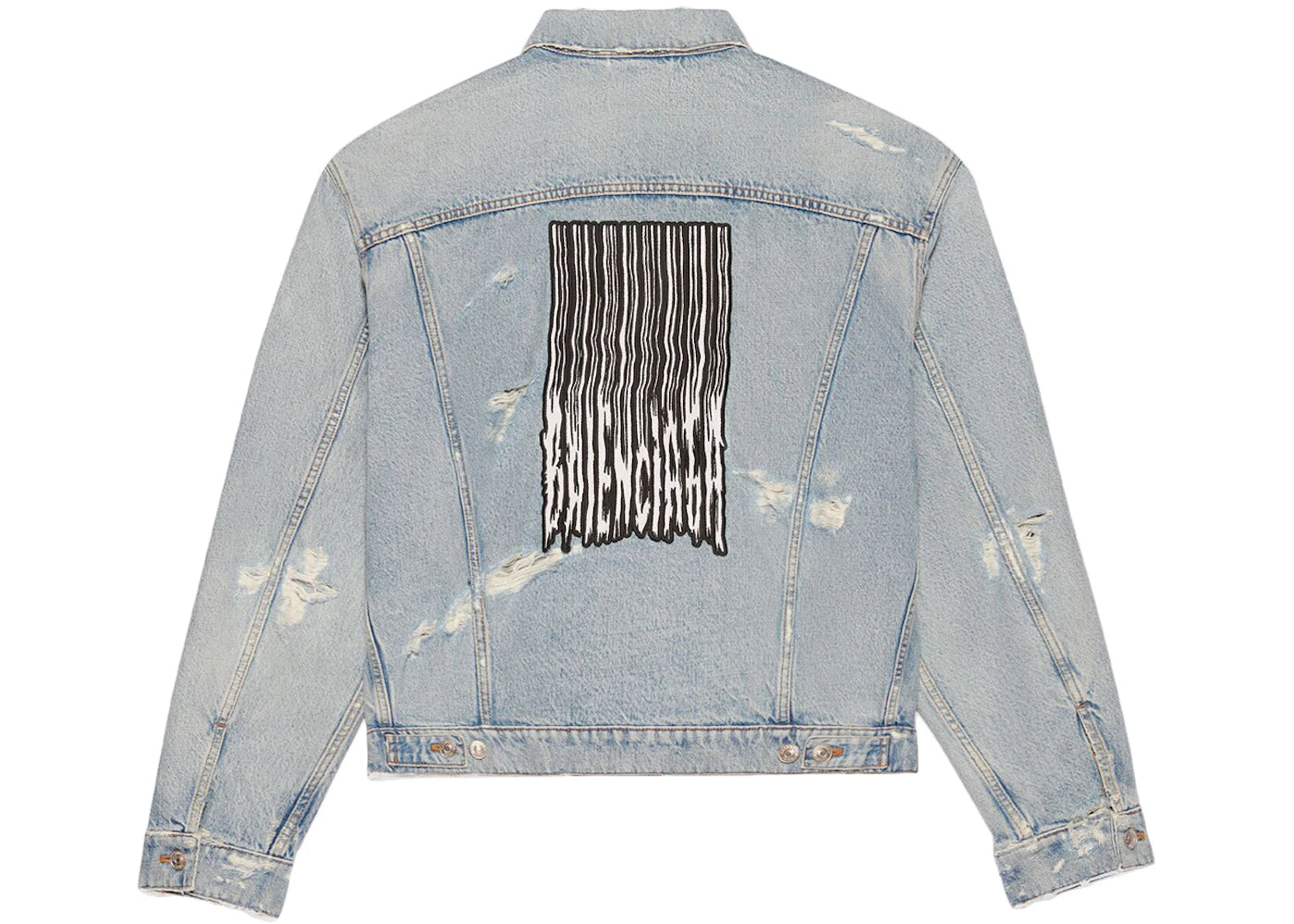 The Balenciaga Barcode Large Fit Denim Jacket Blue is now available at Side Kicks!