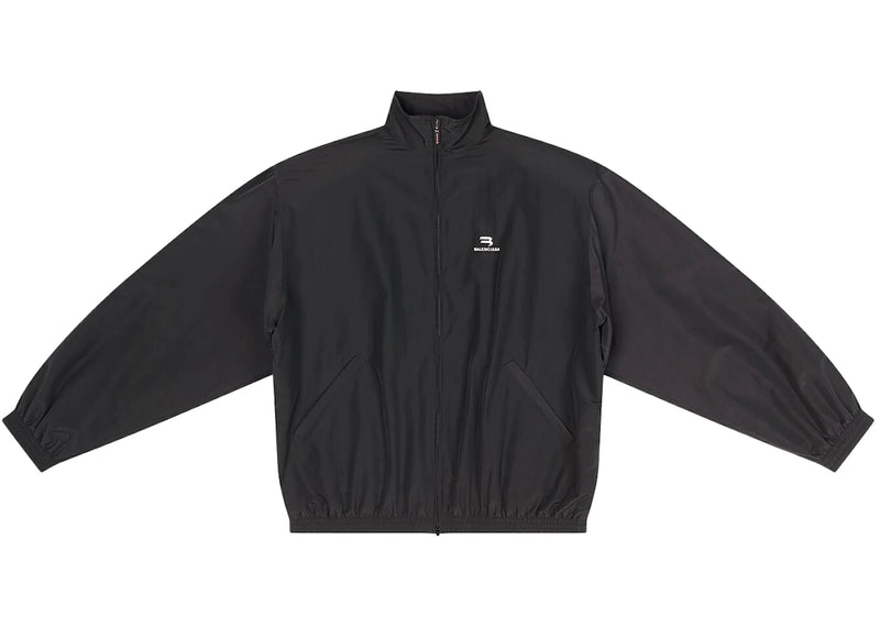 The Balenciaga Sporty B Oversized Tracksuit Nylon Jacket Black/White Logo is now available at Side Kicks!