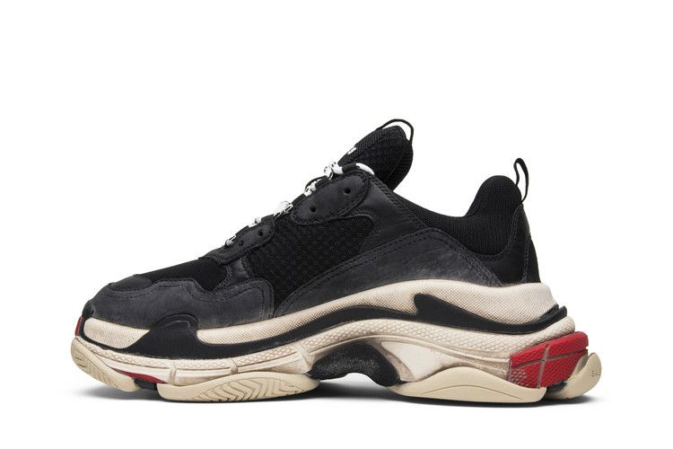The 2018 reissue features a tongue tag, distinguishing it from the original version. Made in China, it maintains the chunky silhouette and layered sole design of the iconic sneaker. Released on October 12, 2018, the Balenciaga Triple S is available now at Side Kicks.