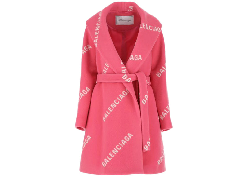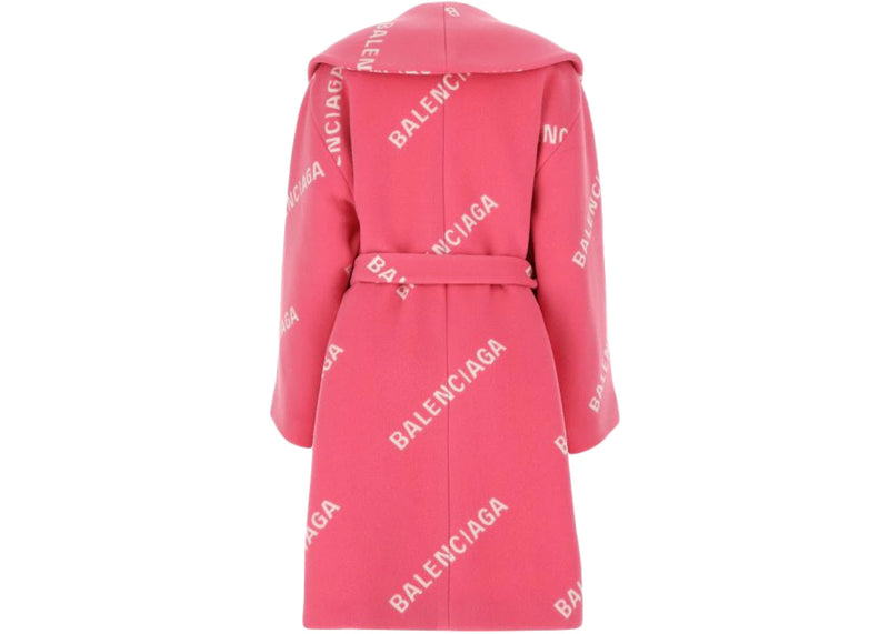 The Balenciaga Women Printed Wool Blend Coat Pink is now available at Side Kicks!