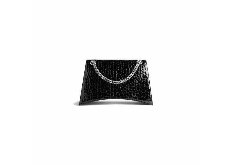 Balenciaga Womens Crush Large Chain Crocodile Embossed Bag Black