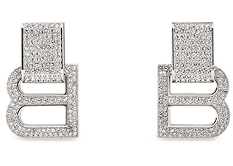 The Balenciaga Women's Hourglass Earrings Silver Brass/Rhinestones is now available at Side Kicks!