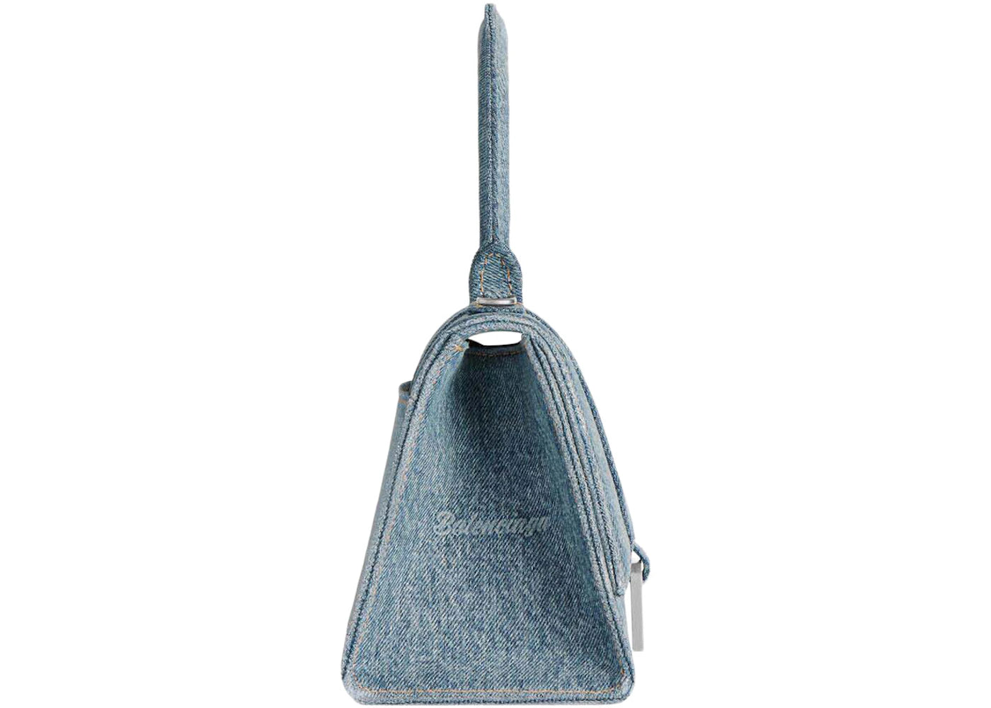 The Balenciaga Women's Hourglass Small Handbag Girly Allover Denim Light Blue is now available at Side Kicks!
