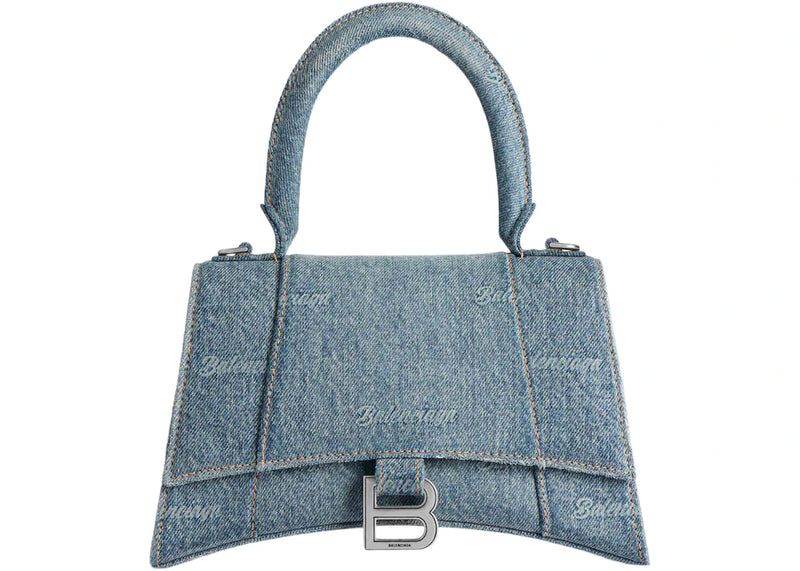 Balenciaga Women's Hourglass Small Handbag Girly Allover Denim