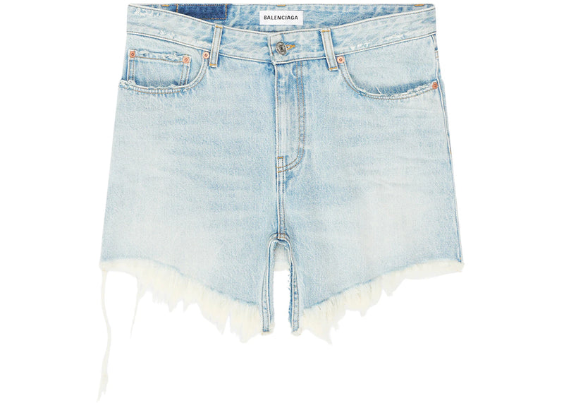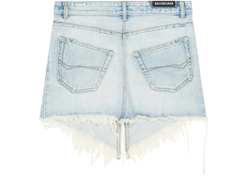 The Balenciaga Women's Japanese Twill Cut-Up Mini Skirt Light Blue is now available at Side Kicks!