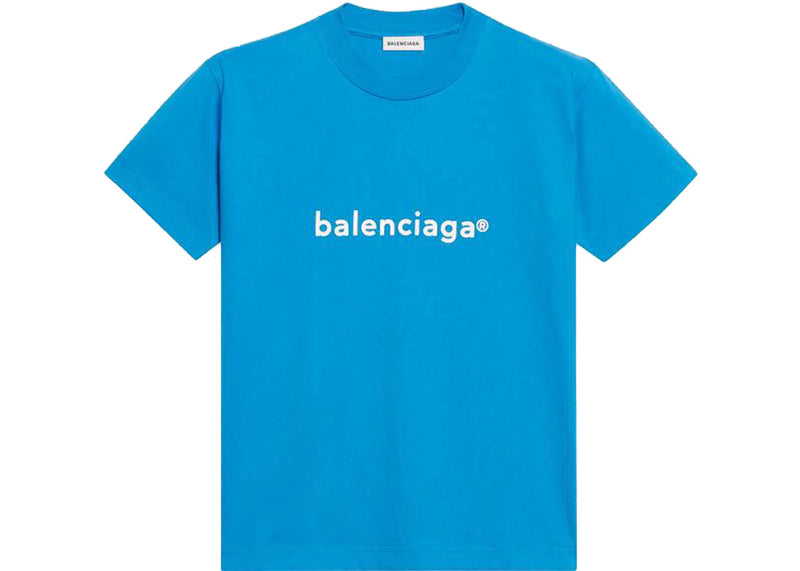 The Balenciaga Womens New Copyright Fitted T-shirt Blue/White is now available at Side Kicks!