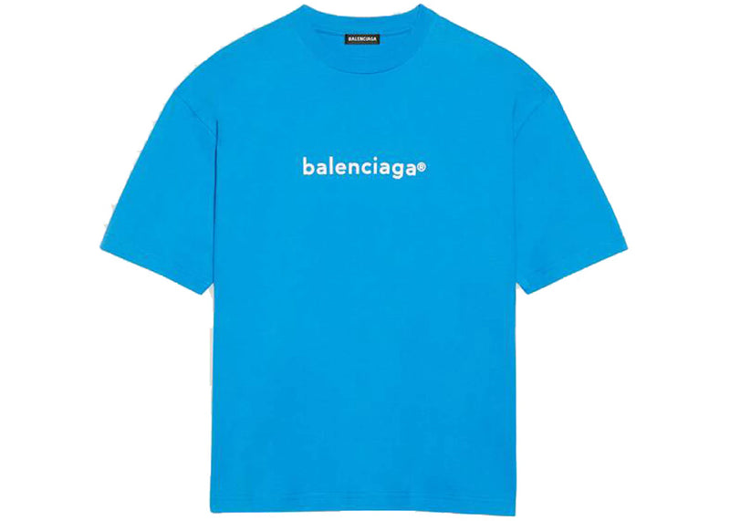 The Balenciaga Womens New Copyright Large Fit T-shirt Blue/White is now available at Side Kicks!